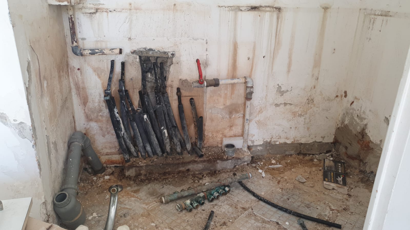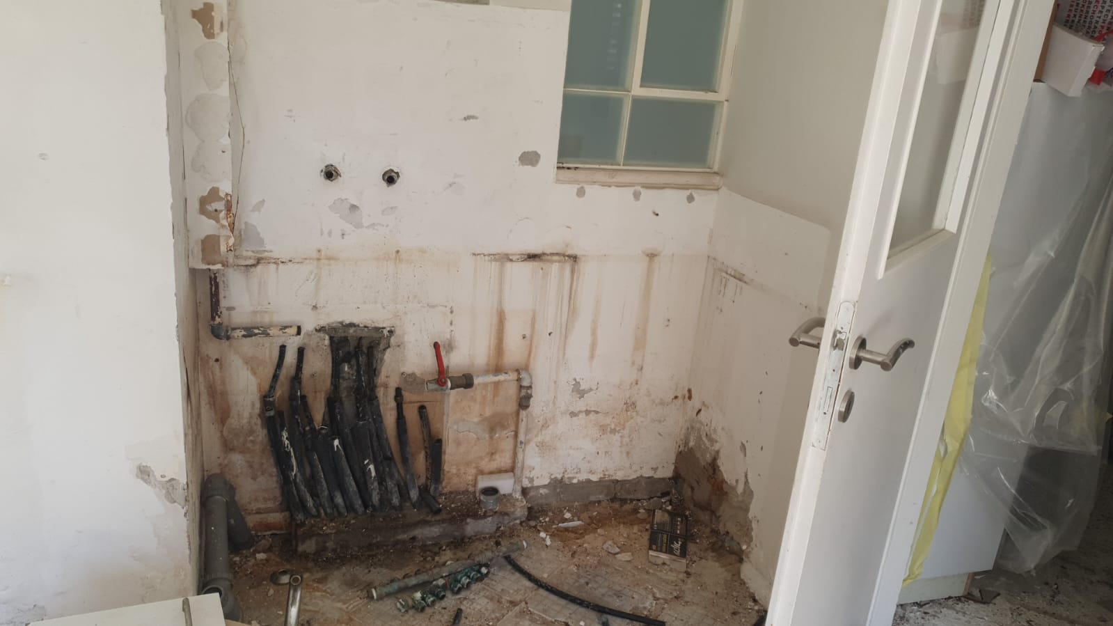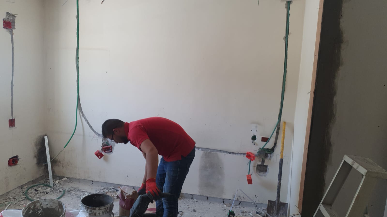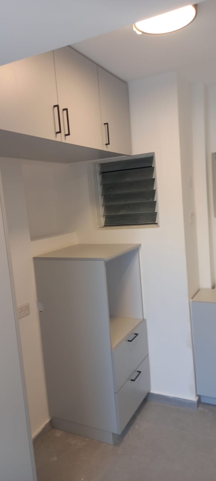 בניית ארונית עם מקום בילד למיקרו, בניית ארונות נמוכים שעליהם יונח שיש למשטח עבודה.
