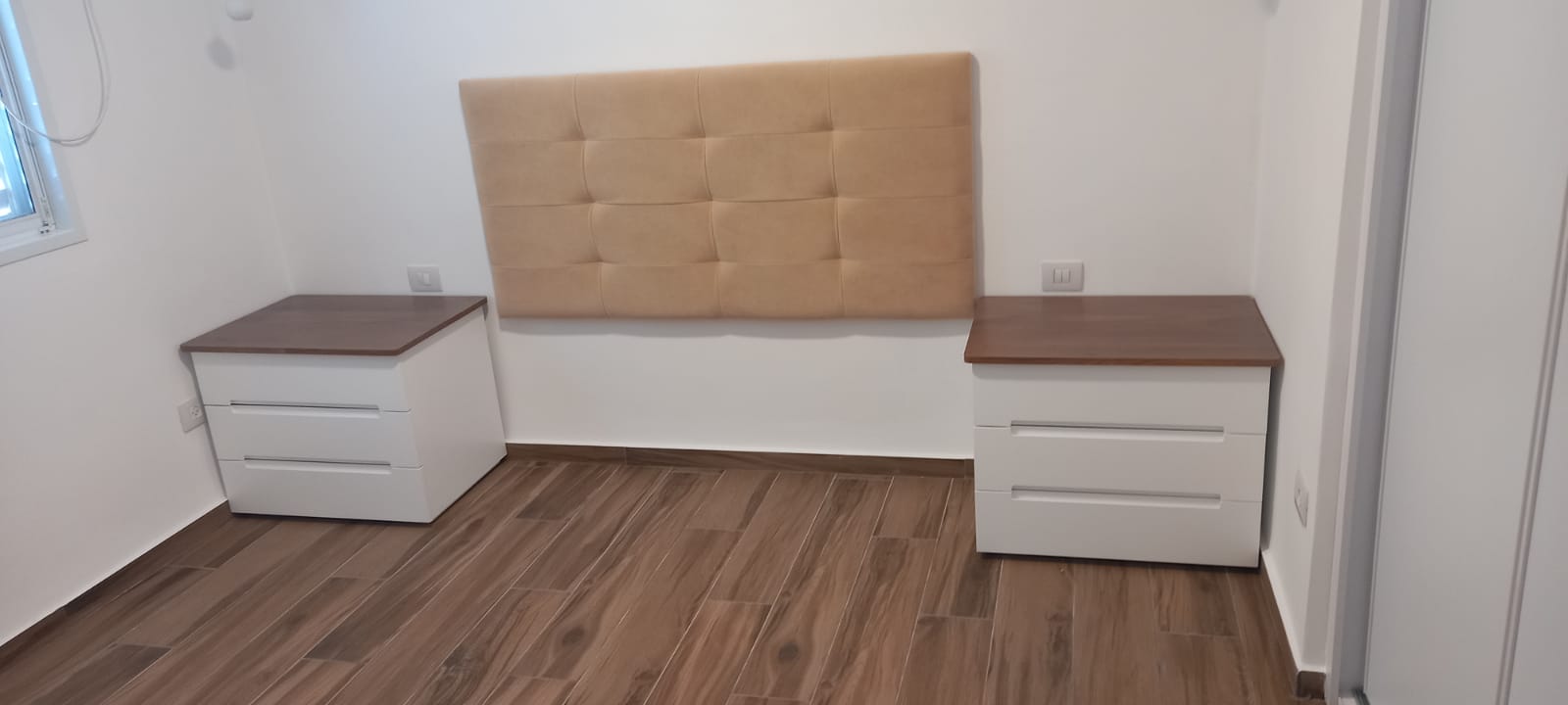בנוסף יצרנו 2 שידות לילה עם ידיות אינטגרליות וטריקה שקטה וגב למיטה שתואם את החזון העיצובי של המעצבת והלקוחה.