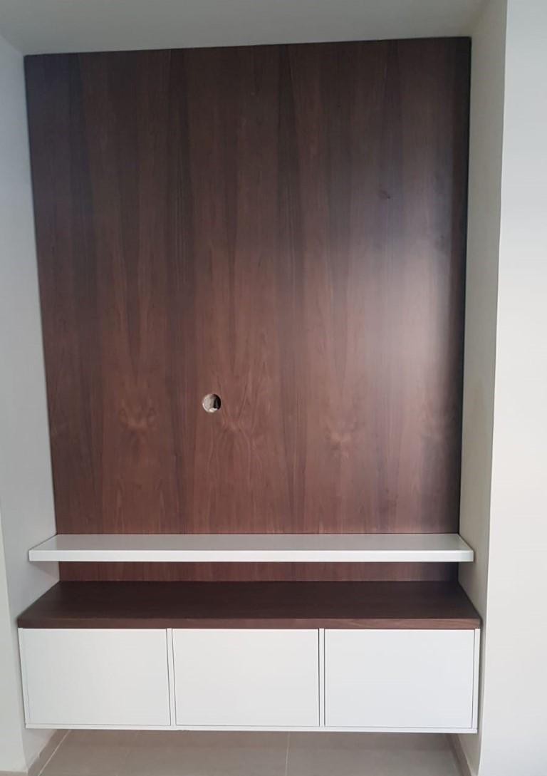חיפוי קיר + מזנון צף + שולחן לסלון + פינת אוכל.
